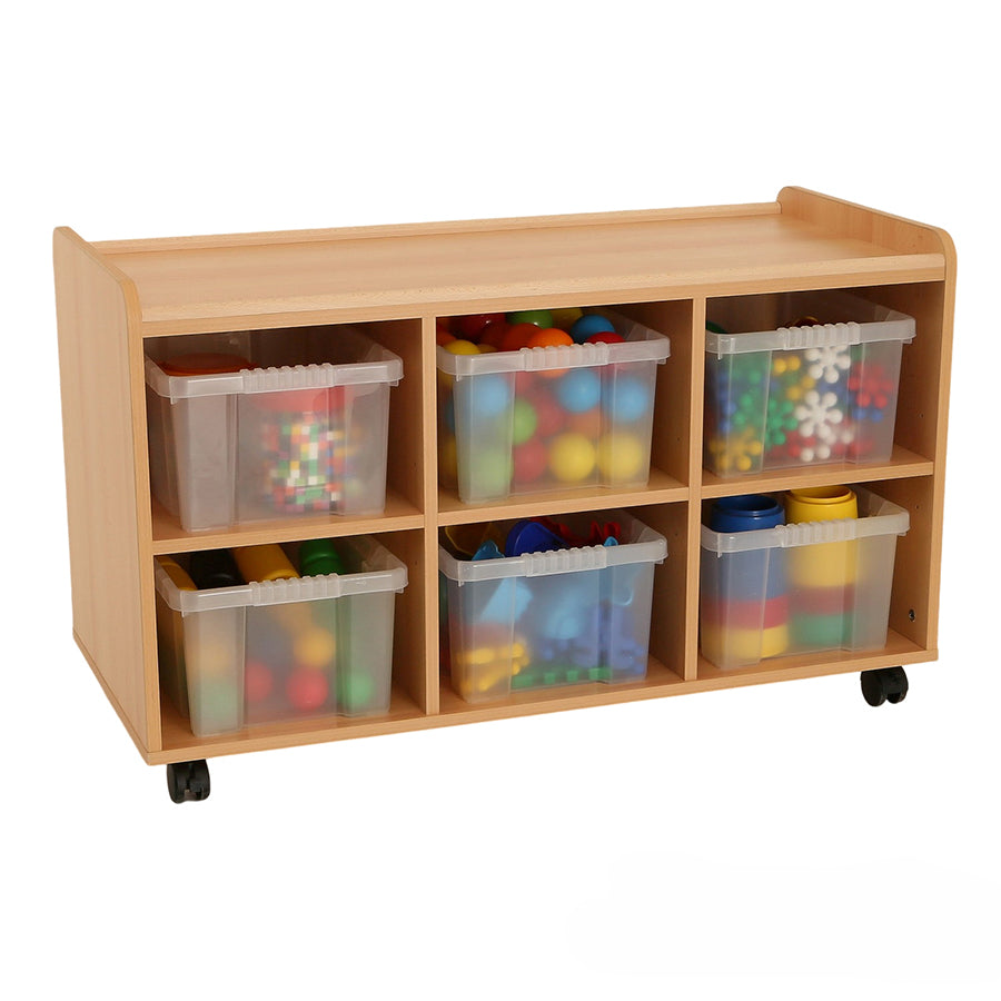 Providing the ultimate flexibility in storage solutions, we believe this premium range has an aura of quality, safety and strength. Complete with a beaded edge which is not only an aesthetically attractive feature but also provides storage and play benefits due to the prevention of items rolling from the surface, the units complement our ranges of beech furniture and can be used for multiple purposes within your setting. In addition, a strong, rear back panel provides extra durability, castors enable easy mobility and are also lockable and the space-saving sliding door system adds a streamlined look and the prevention of access as required. The varied range of units offer different combinations of deep and shallow plastic trays either coloured or clear or for customers who prefer an alternative to the plastic trays, wicker baskets are an option which present an eye-catching, natural look.