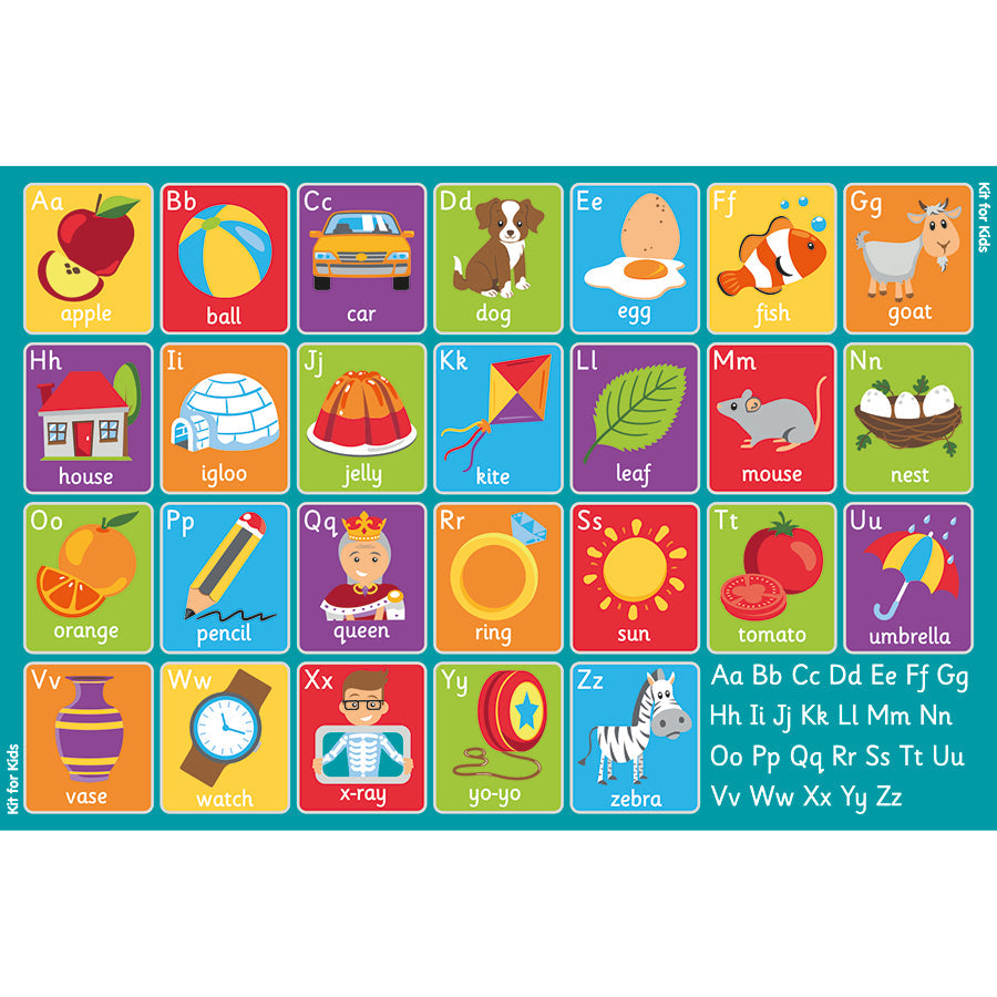 Large 3 x 2m alphabet carpet featuring 26 placement squares.