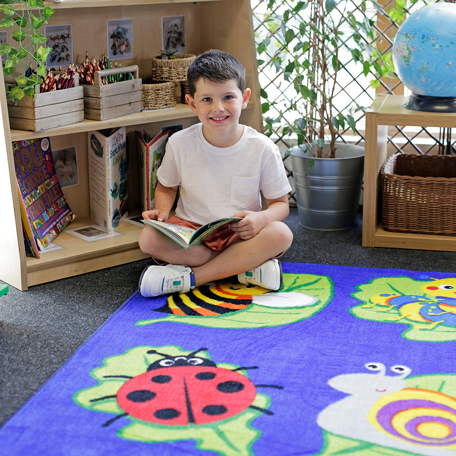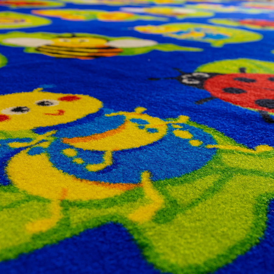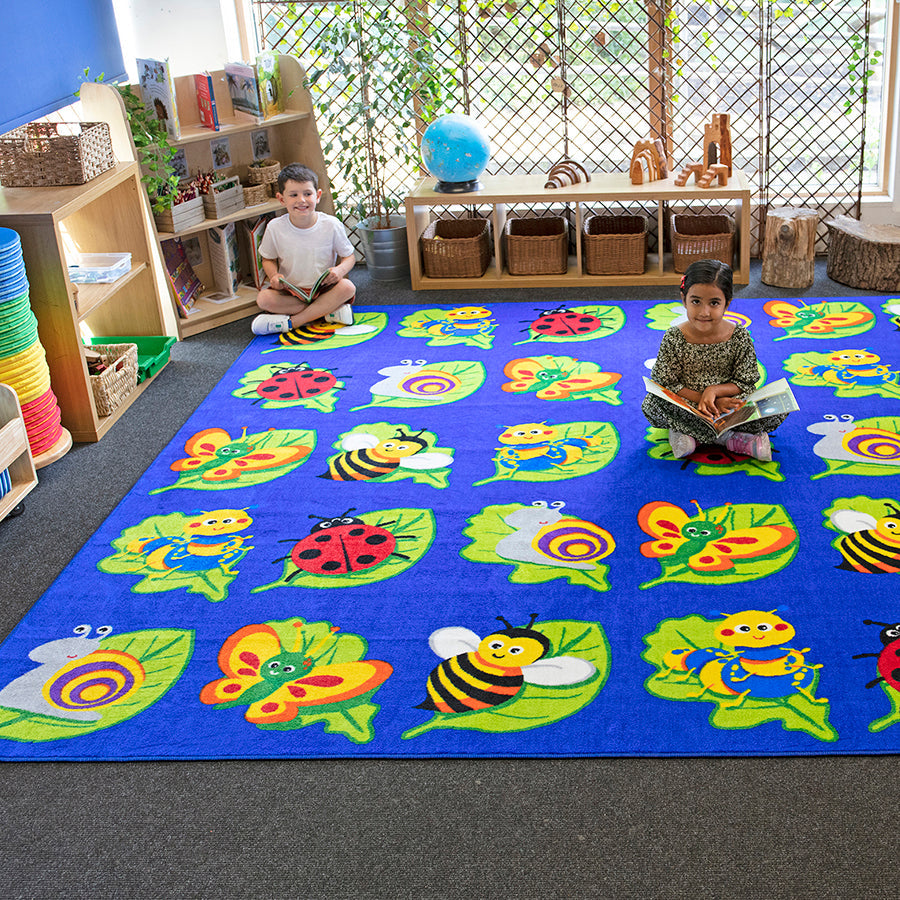 3x3m brightly coloured square carpet, each placement area identifiable by a bug on a leaf.
