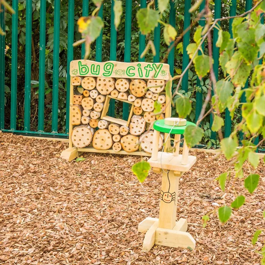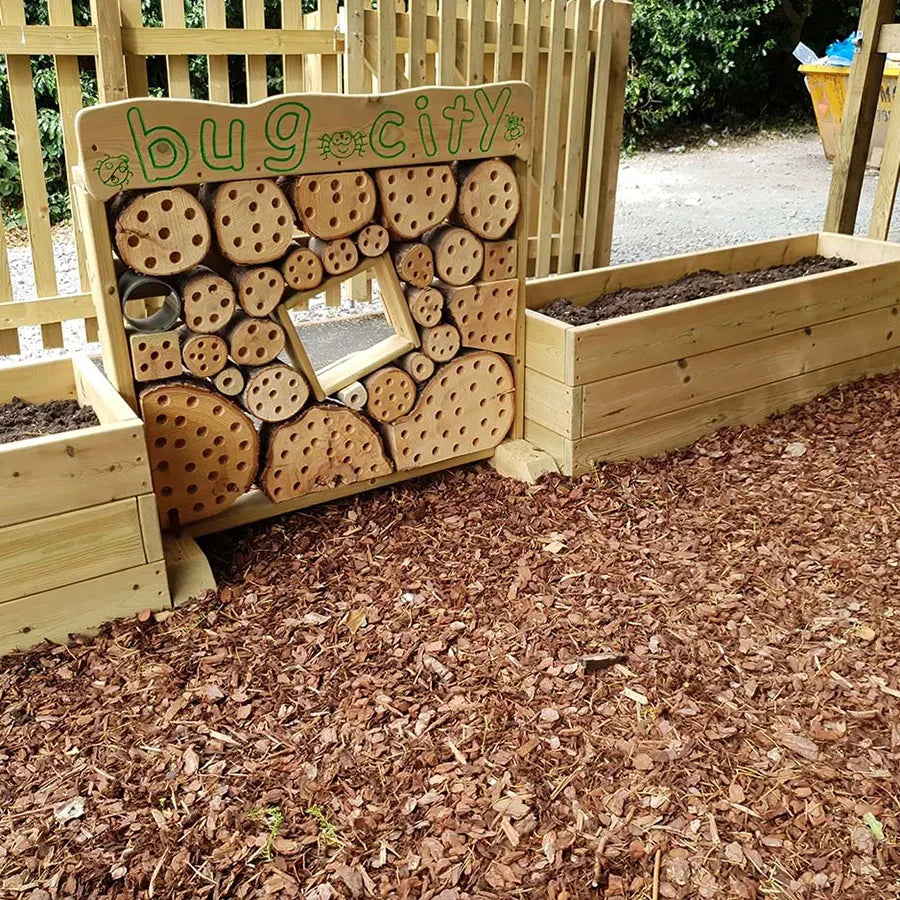 Feed their fascination for all things creepy crawly with bug city. This robust timber unit is filled with rustic untreated logs to attract bugs, spiders and other creepy-crawlies. Providing children with a unique opportunity to observe bugs exactly as they should - in their natural habitat. A great way to promote nature play & learning for schools & nurseries!