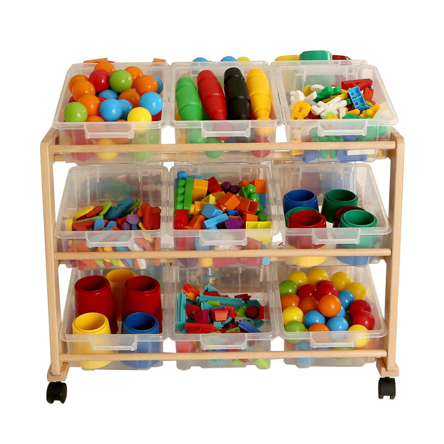 A superb range of high quality Classroom Tidies manufactured from solid beech and finished in a clear natural lacquer. All of the Tidies are supplied with castors for ease of movement and the units are available in a variety of sizes with colourful or clear plastic storage trays. There is also the alternative option to order with Wicker Baskets.