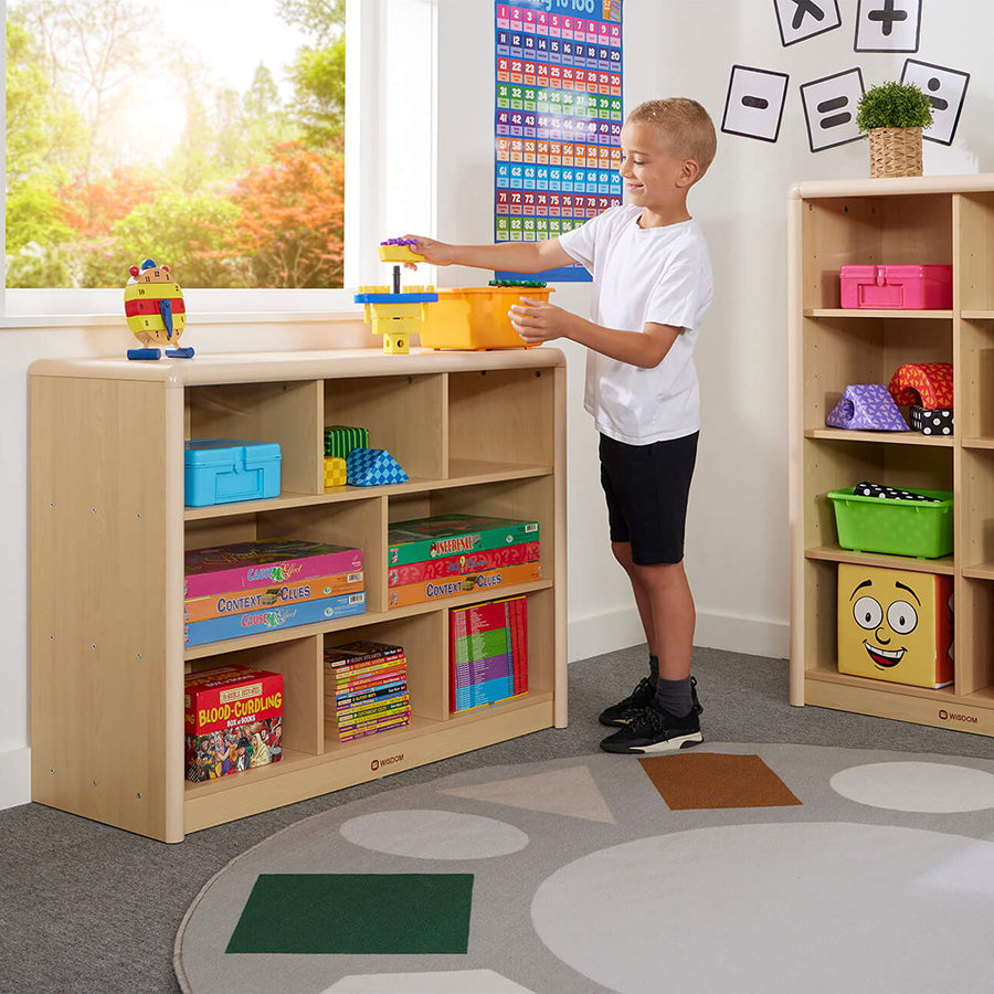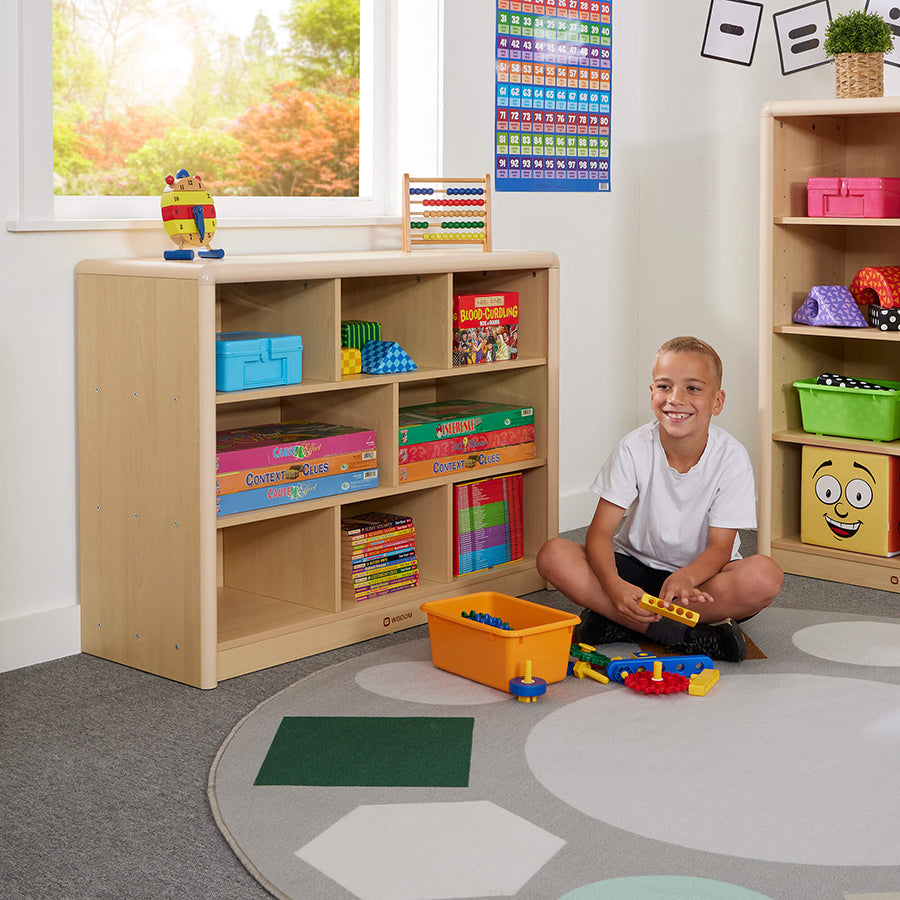 The Elegant 8 compartment cabinet is a functional storage unit with 3 deep shelf levels to optimise space in your classroom. Shelf levels are 230mm high and afford plenty of storage capacity within easy reach of your children. The neutral colour tone of our Elegant units are ideal to create a calming environment in the early years classroom.