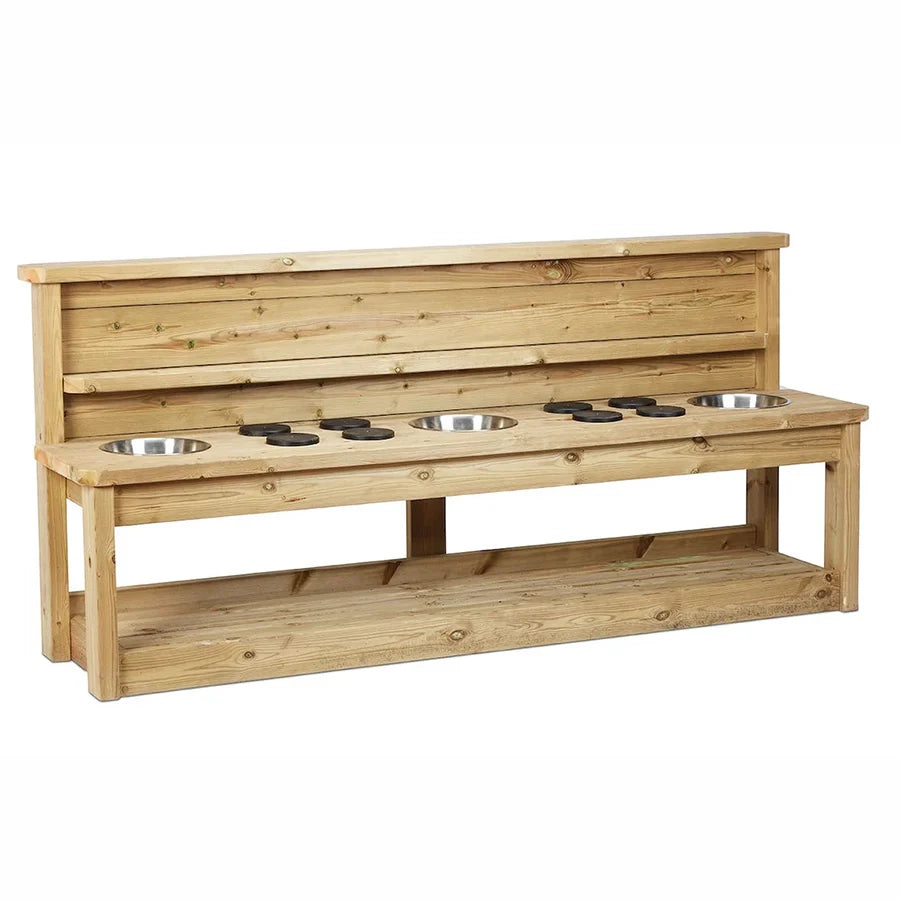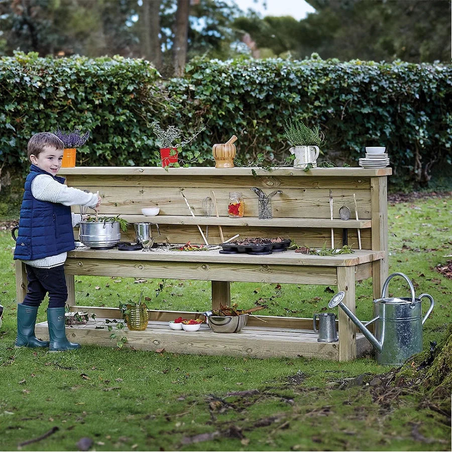 Perfect for group play, the Five Station Kitchen features 2 sets of hobs and 3 removable bowls. The upper and lower storage shelves provide ample storage space for pots, pans and other resources. Features handy storage slots for housing utensils.