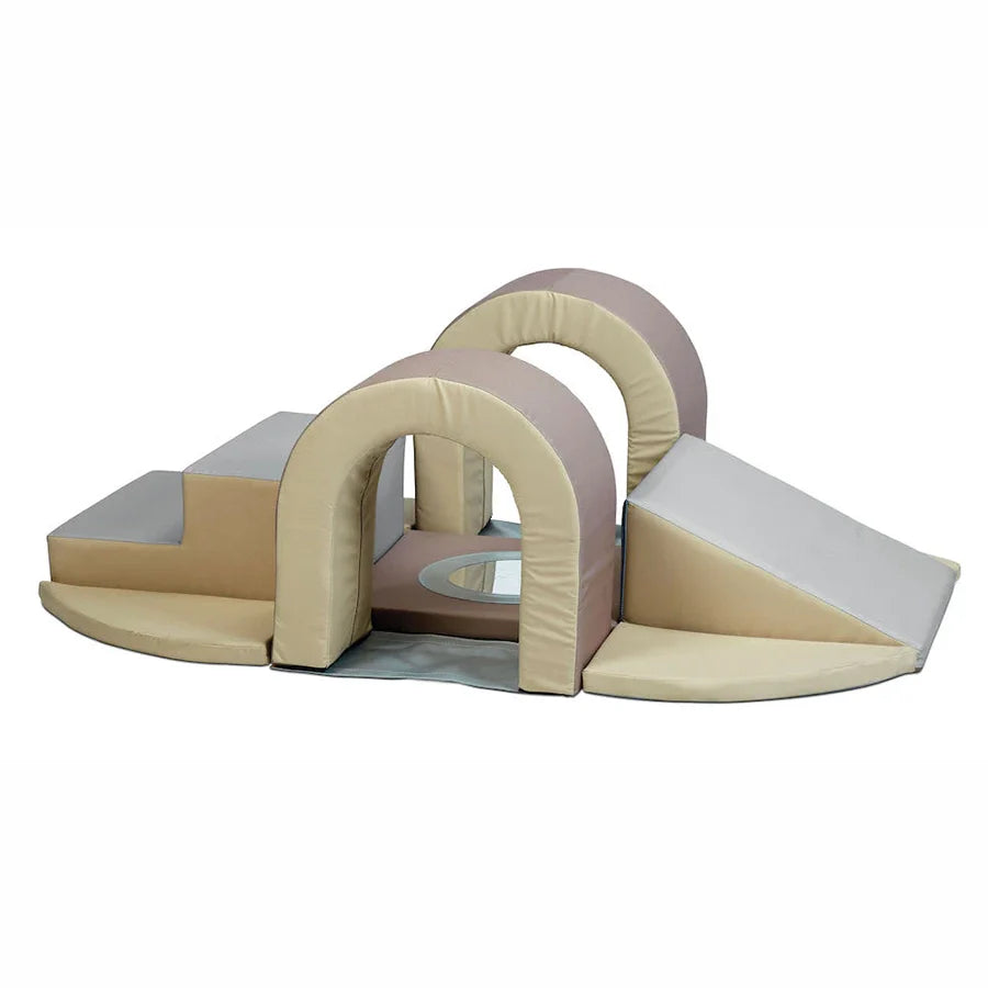 With a neutral colour palette and tactile surface, Kinder Soft Play sets are a beautiful addition to any baby room. Perfect for tummy time, Kinder Soft Play helps babies develop strong neck/shoulder muscles and promotes motor skills. Each set has a hook and loop fastener under the base, that allows the individual modules to attach and detach with ease. The strong foam core resists bending and twisting, whilst the high-quality matt covers are durable and easy to clean.