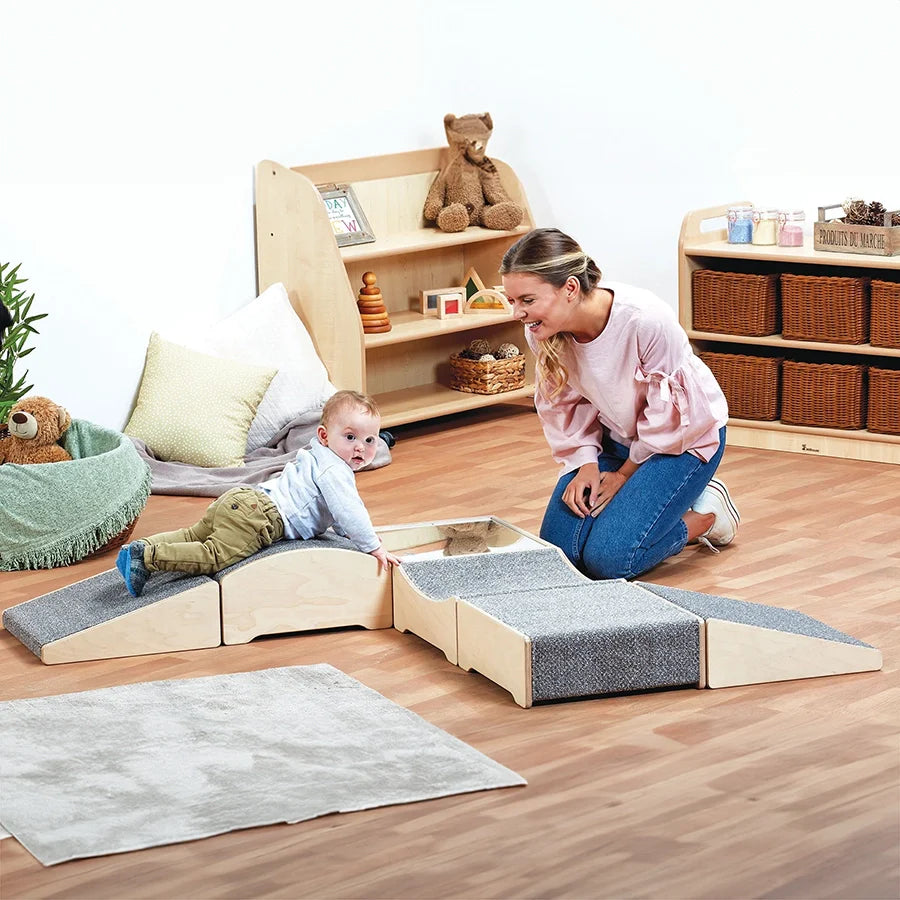 Kinder Trail is a wonderful resource for tummy time and encourages babies to climb, crawl, explore and play. Each of the trail sets consists of three or more blocks to create an engaging configuration.