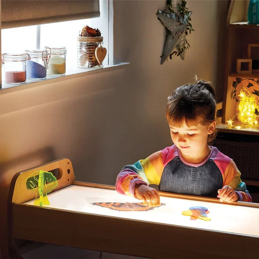 Perfect for sensory learning and understanding the world, this creative furniture solution cleverly combines a light box with functional storage. Complete with 3 shallow clear tubs and 3 deep clear tubs for housing resources. The light box is mains operated with LED bulbs which can be replaced as required.