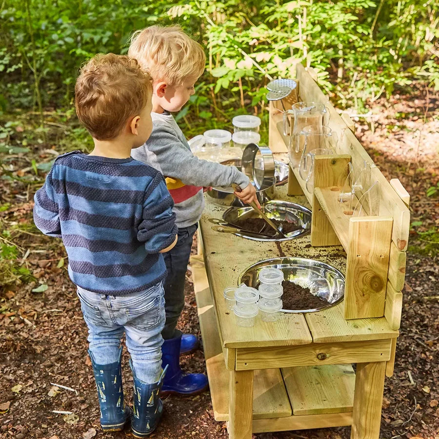 - Ideal for outdoor role play and messy mud play, children will love stirring, cooking and washing up with mud and other messy play materials in this Outdoor Messy Kitchen.