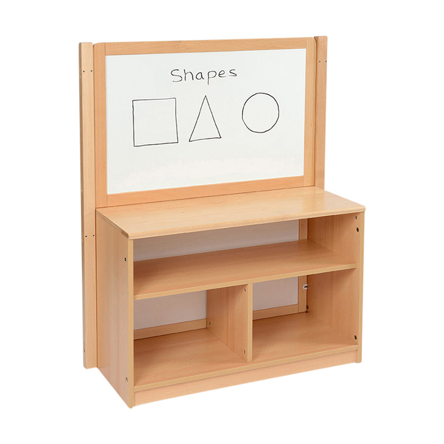 The RS Open Bookcase with inset panel and drywipe/mirror divider is part of the RS range. This can be a stand-alone unit or part of the Room Scene range and when connected with other RS units it offers you to create boundaries in the classroom and nursery. Manufactured from solid beech and 18mm beech faced MFC with ABS edging.