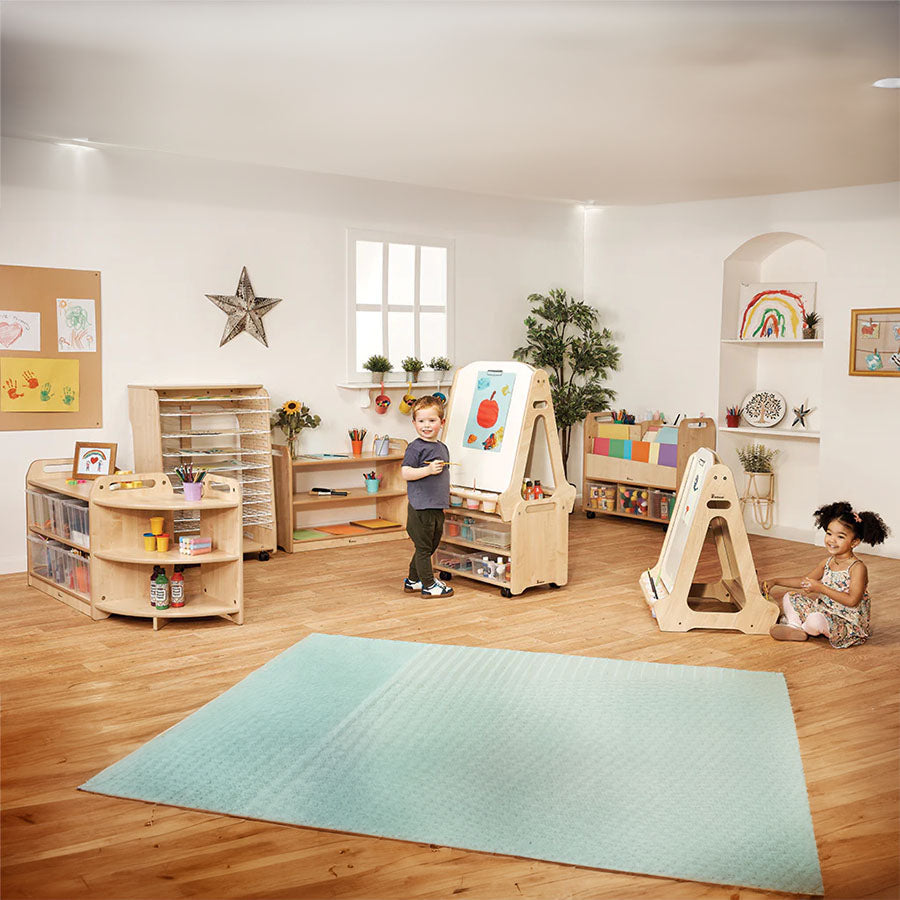 The Creativity Zone combines functionality with inspiration. Designed to allow maximum storage for arts and crafts materials, this zone also creates an environment that encourages expression and imagination. All units have a maple melamine surface that is waterproof and easy to wipe clean. Mobile units feature premium lockable castors with anti-scratch, low-noise wheels.