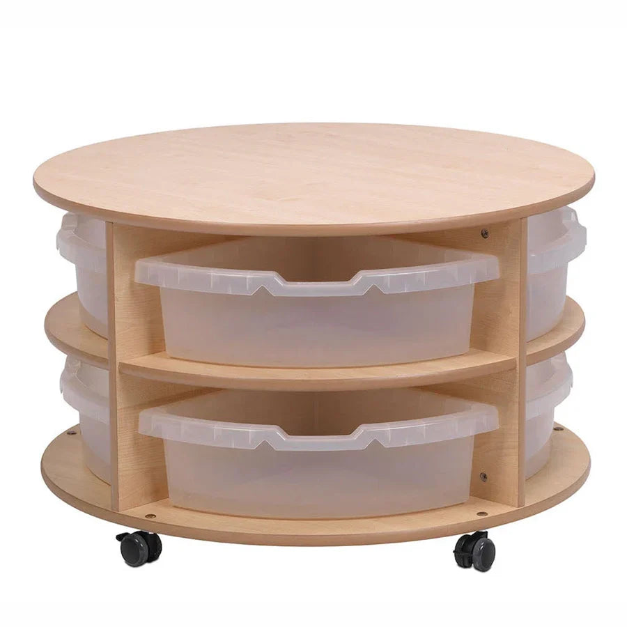 Double Tier Mobile Circular Storage Unit With 8 Clear Tubs or Baskets