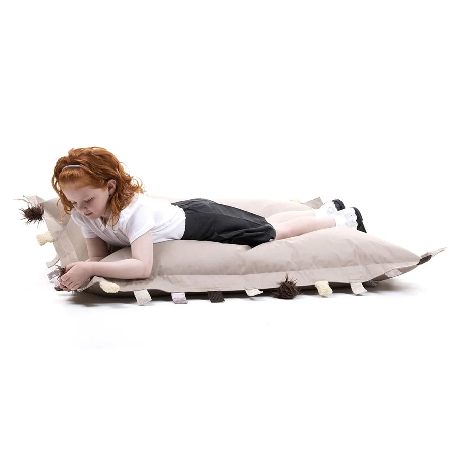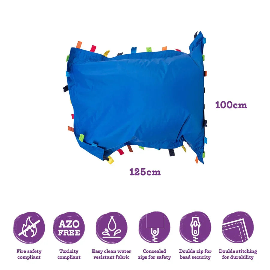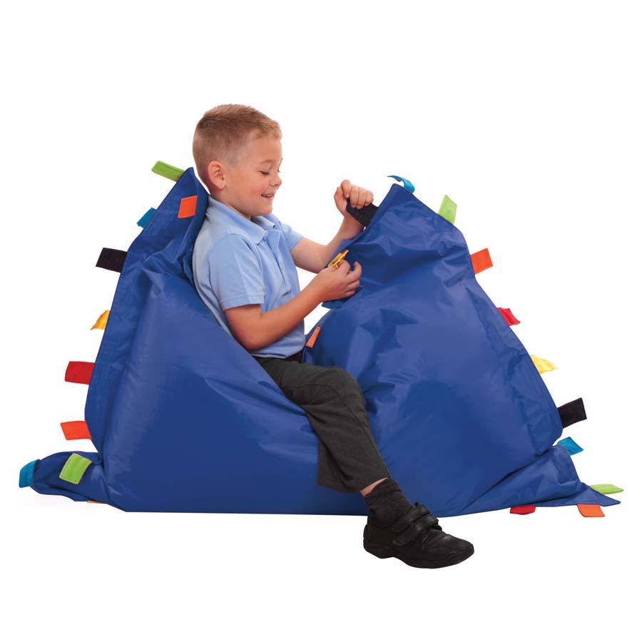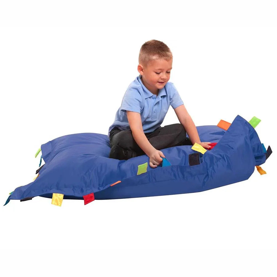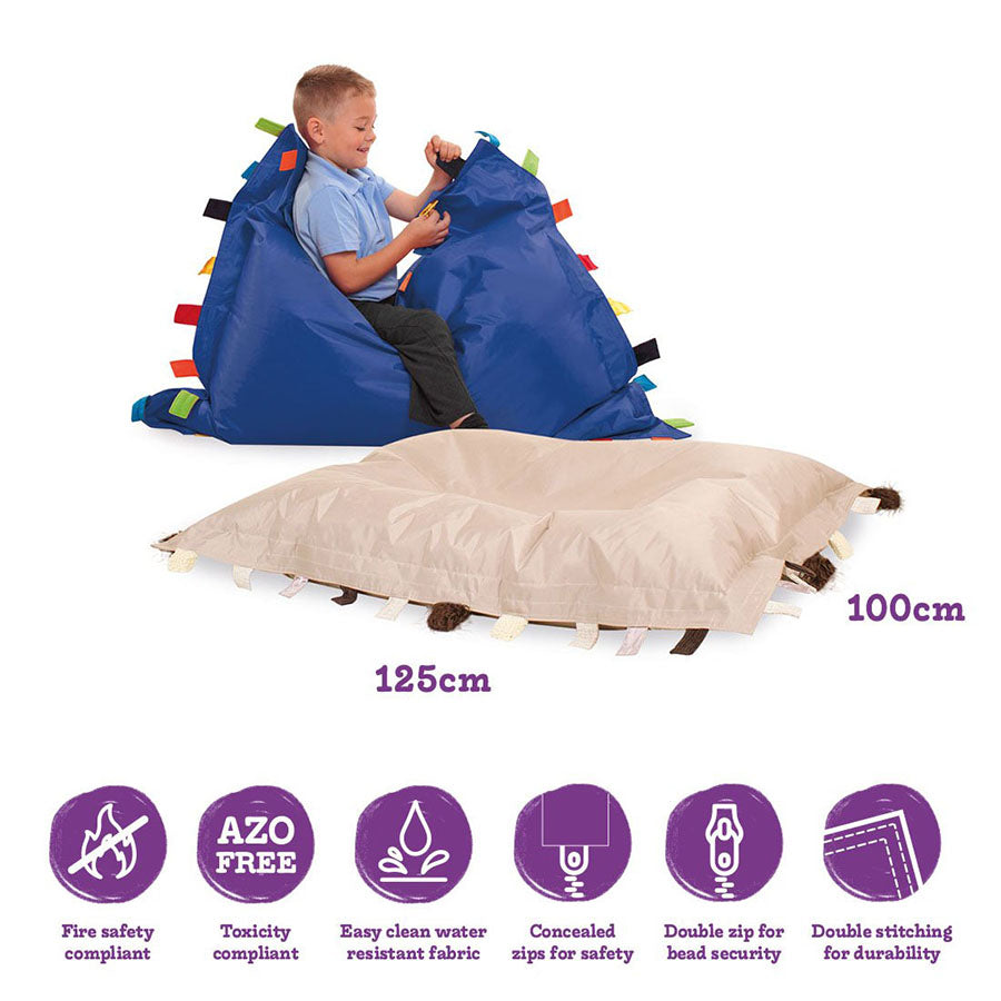 Giant bean-filled floor cushions with quality textured tactile tags around the edge. Helps provide a source of sensory stimulation for children. Waterproof wipe clean polyester fabric to help instantly clean up spills.
