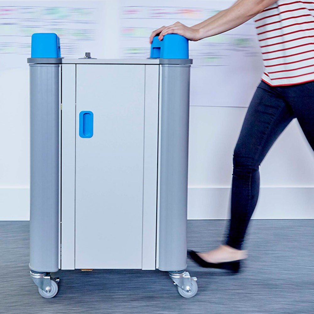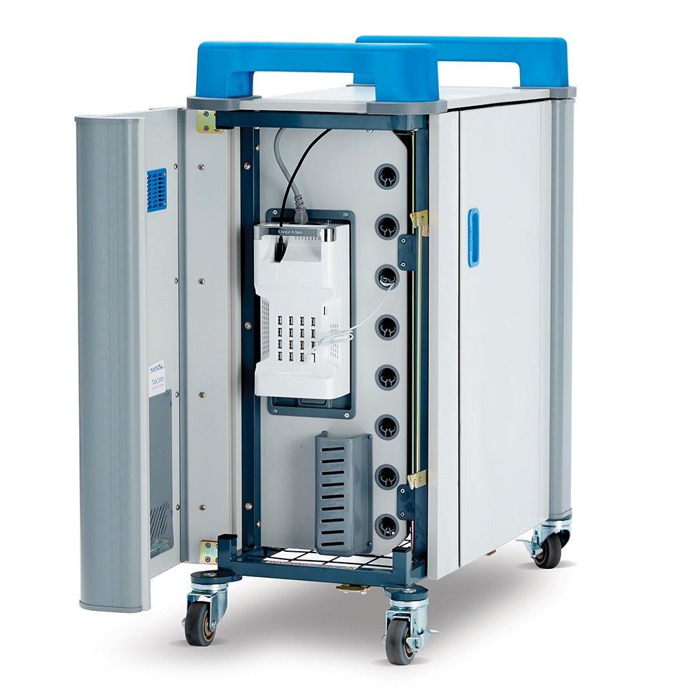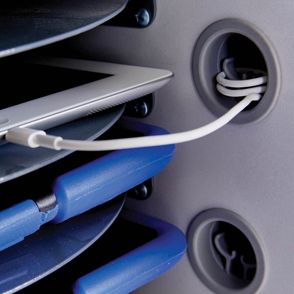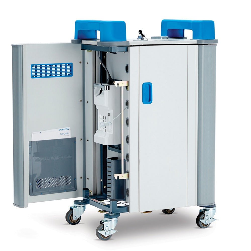 The TabCabby 16 Horizontal Compact Charge & Sync charges 16 tablets up to 11″ screen size, including protective cases, plus mobile phones, POS, Kindle, Android, Surface or any other USB chargeable equipment via a 16 port USB A Hub. With horizontal storage shelves it simultaneously charges & synchronises with the Boost+ 16-USB, a managed hub mounted in the side of the cart, delivering high-speed charging and syncing saving time when deploying apps, media and content.