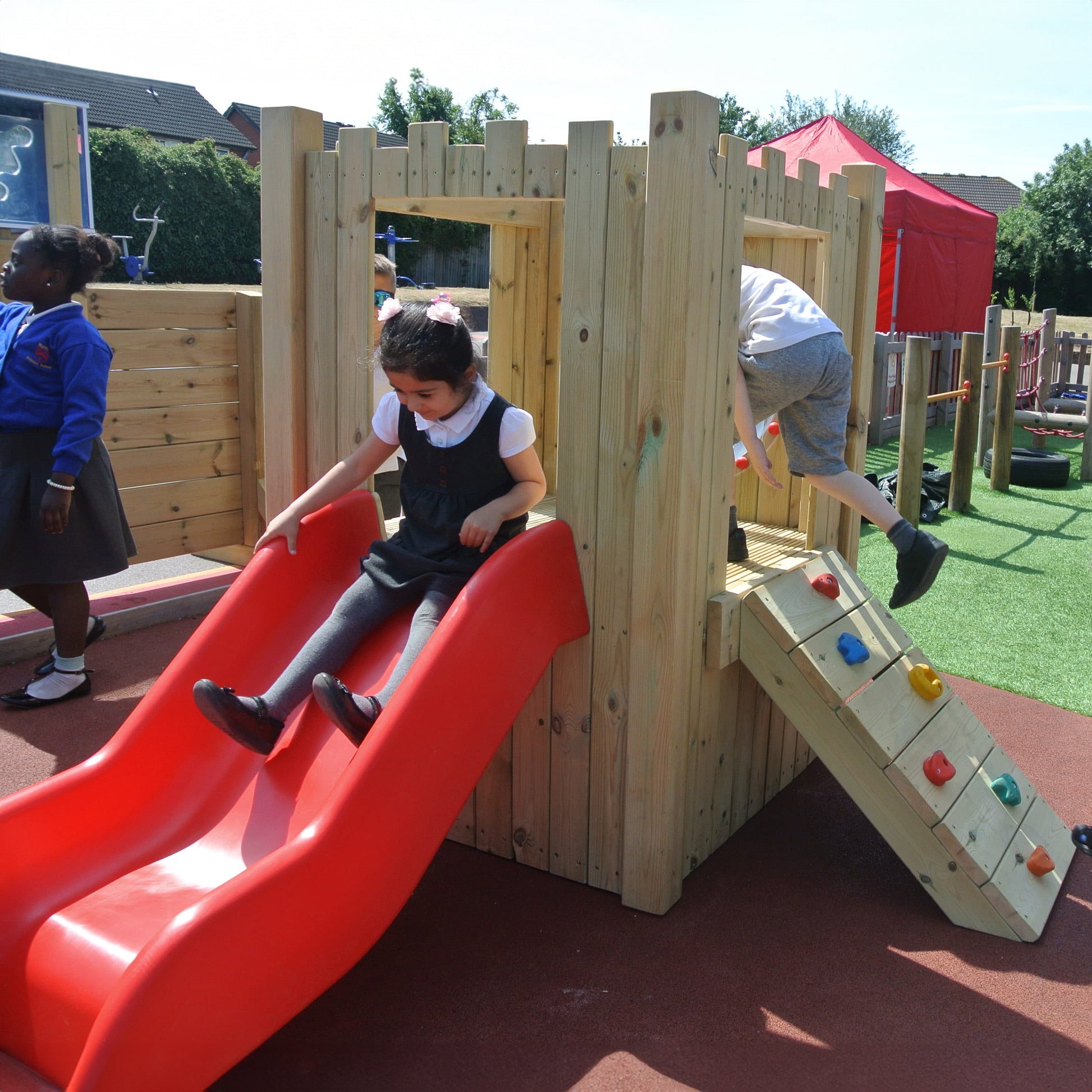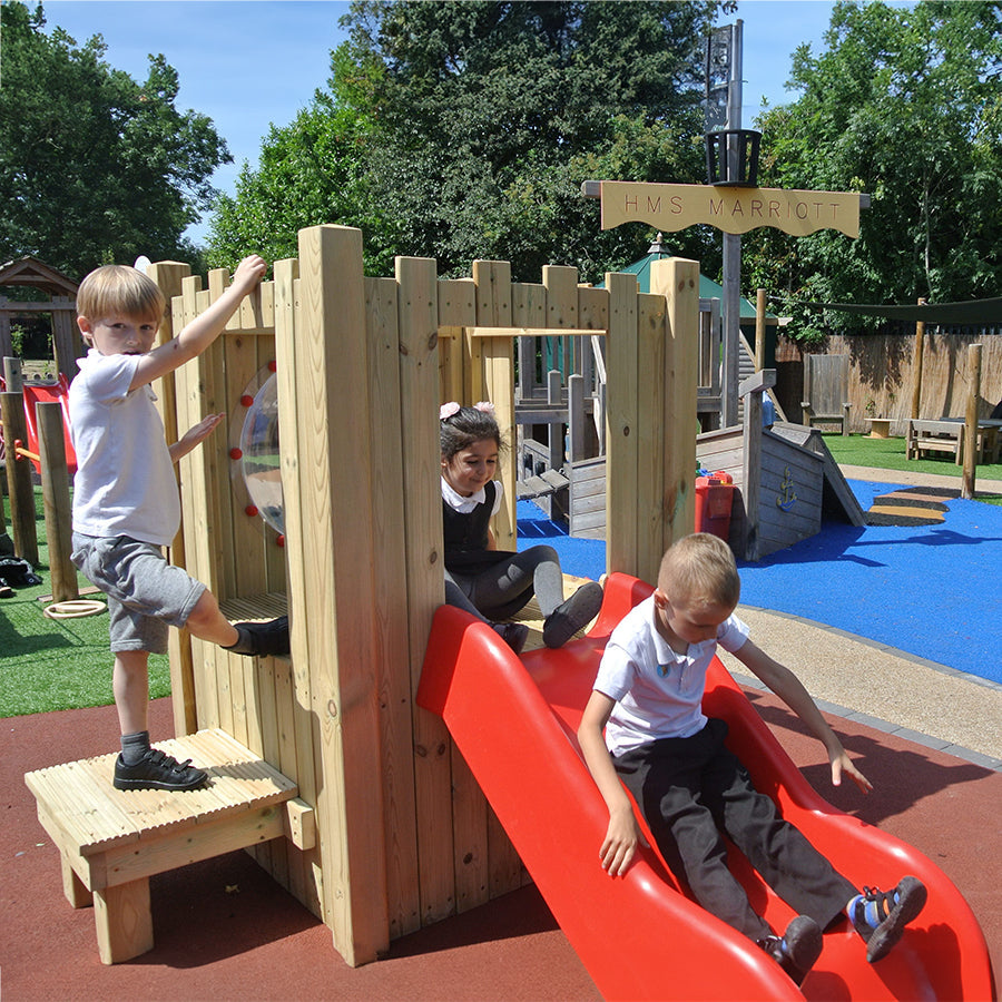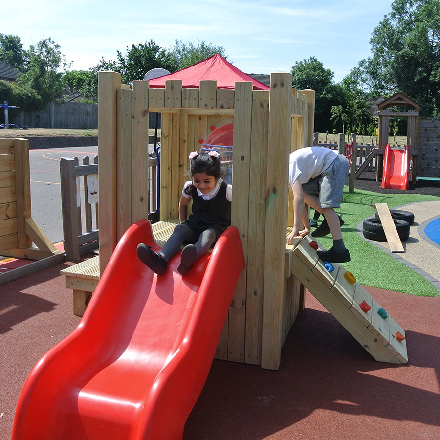 Our Tiny Castle is another popular choice for school playgrounds and will help with physical development. Whether pretending to be dragon-slaying knights or kings and queens, castles provide children with oodles of role playing fun. This unit is free standing and can be moved around your outdoor area.