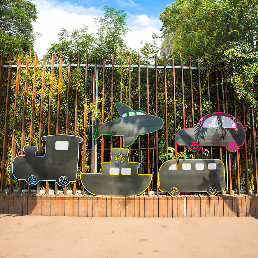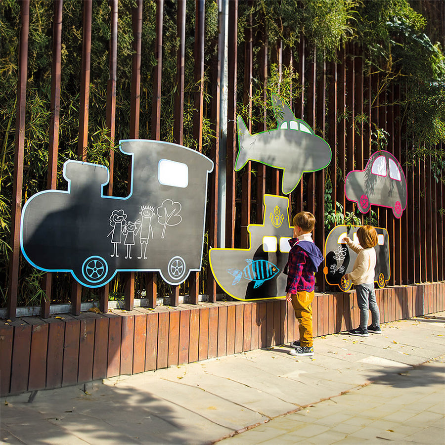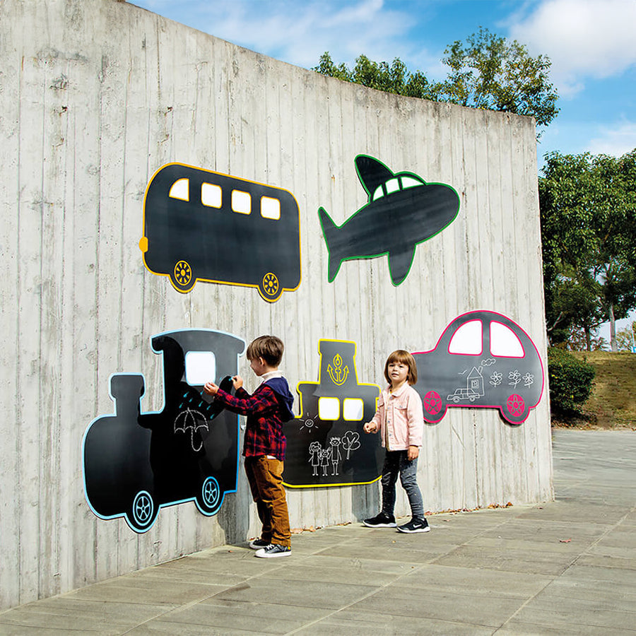 Our Transport chalkboards are a great aid to stimulate children's mark making. Children will love drawing on our 5 separate transport modes - car, bus, plane, train and boat. Through their mark making, they are communicating their ideas, expressing their feelings, developing their imagination and creativity. Supplied with suitable fittings for fence or wall mounting.