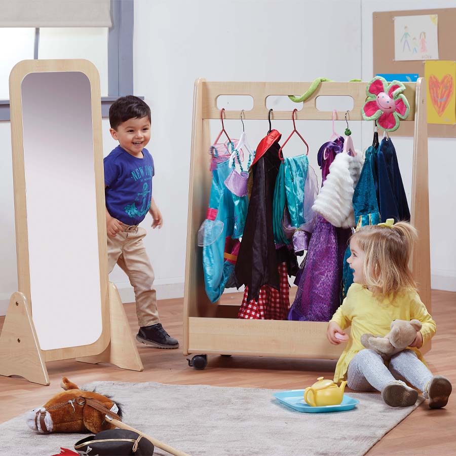 Dressing-up is a wonderful activity for children of all ages, and a fantastic way to help develop confidence and social skills. Enhance your dressing-up area with a storage trolley and freestanding mirror set. Part of the Millhouse Signature range.