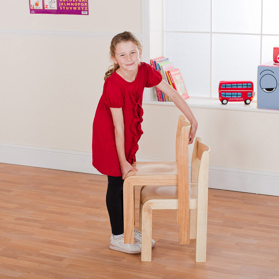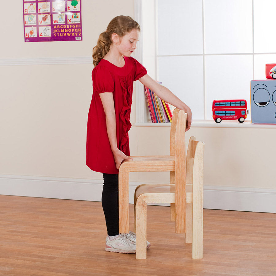 Robust, high quality, hand crafted solid wood stackable childrens chairs.