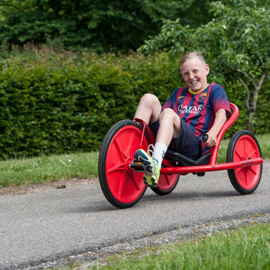 A great item for after school facilities. Any child's dream is to drive such a cool vehicle, built in a futuristic design. Stimulates brain activity - in both the right and the left hemispheres. Steering is done by a combination of handles and body weight. Cool driving characteristics enabling the child to go both forwards and backwards.